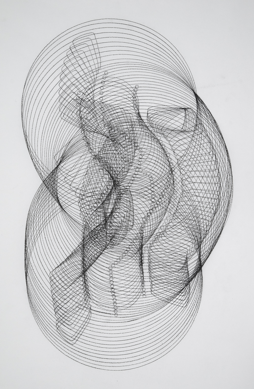 These drawings are part of on ongoing series made by systematically tracing a single object with rhythmic gestural improvisation. Each Dark Loops drawing is made simply by tracing a found tape reel over and over for as long as it takes to use up an entire black pencil.