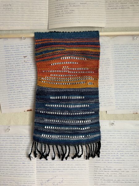 Kamila Orbegoso is an emerging interdisciplinary artist based in Kjipuktuk, Nova Scotia. She grew up in Lima, Peru where she studied psychology, moving to Canada in 2017 to study at NSCAD University. She graduated in 2024 with a BFA in Textiles and Fashion. She uses weaving, ceramics, mixed media, creative writing and installation to explore themes of memory, self-expression and healing, often working with her own family history and themes of trauma. Her work centres the way art can help navigate emotions and serve as a mechanism for self-exploration. Since graduating, she’s furthered her practice while facilitating textile and fashion based workshops and experiences for youth with Wonder’neath, NSCAD Art Factory and the MacPhee Centre for Creative Learning, exploring mixed-media creation and storytelling.