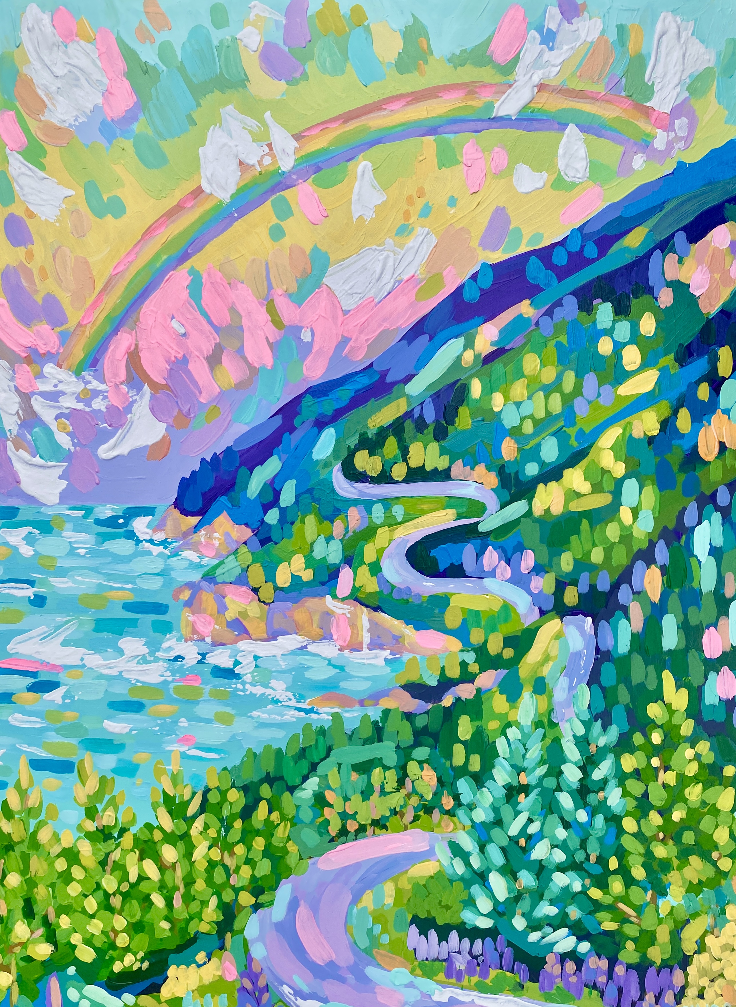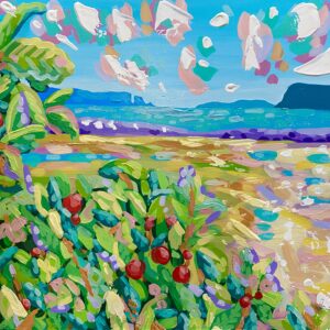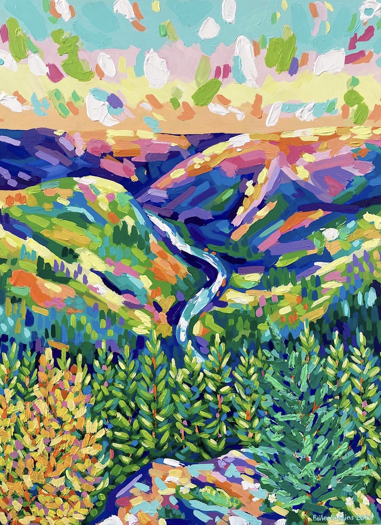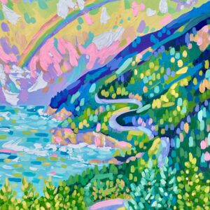 Her art practice currently focuses on landscape painting. She creates bright, bold, and vibrant paintings inspired by her surroundings which are aimed at capturing the essence and feeling of a place.