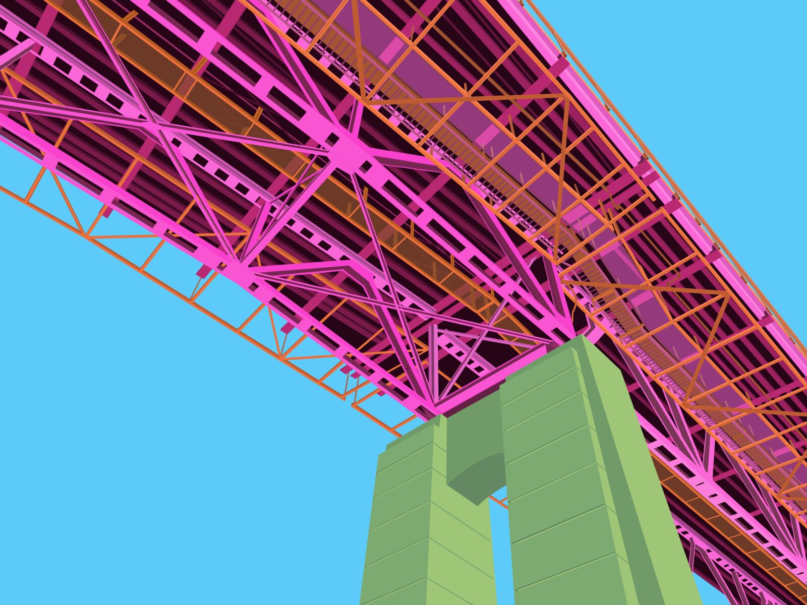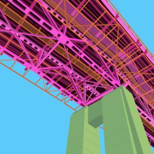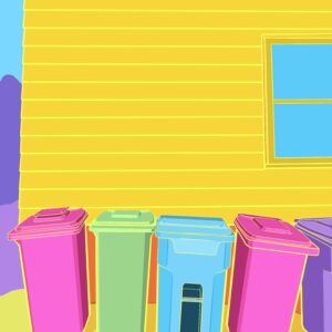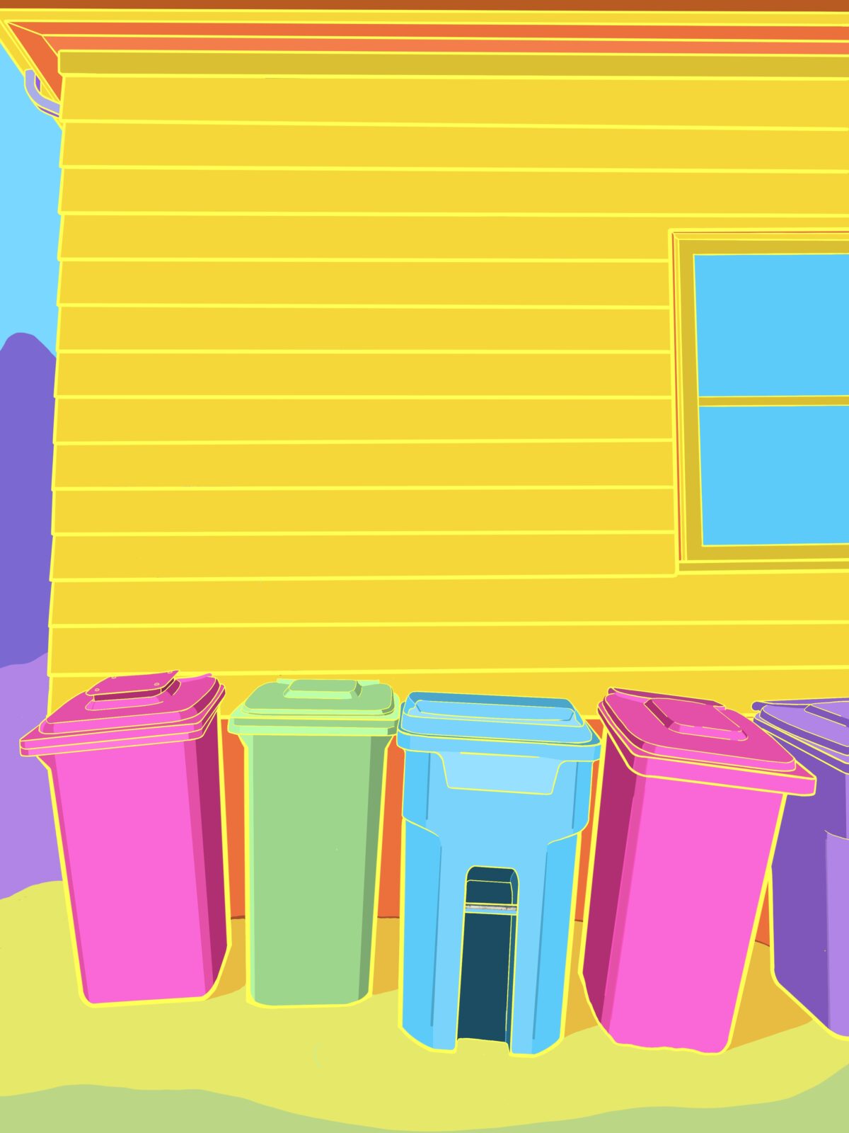 Art is a political act, providing colour, shape, and genre to speak to how we move and see reality. Abstract forms of the everyday things—imbued with light and vivid colour—are simultaneously nostalgic and modern. Those things embedded with us and mostly unnoticed are the tools of political acts. Changing the colour of everyday things—recycling bins, telephone poles, bridge—forces a new and skewed reality of things, jarring a new perspective.
