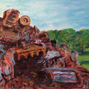 My paintings spring from observation, imagination, obsession and photography. I prefer people as a subject because they have shaped this moment in history, for better or worse. Other artists tend to avoid them, at least in this region. The collage aspect plays with how much the eye trusts photography more than gesture, line or colour.