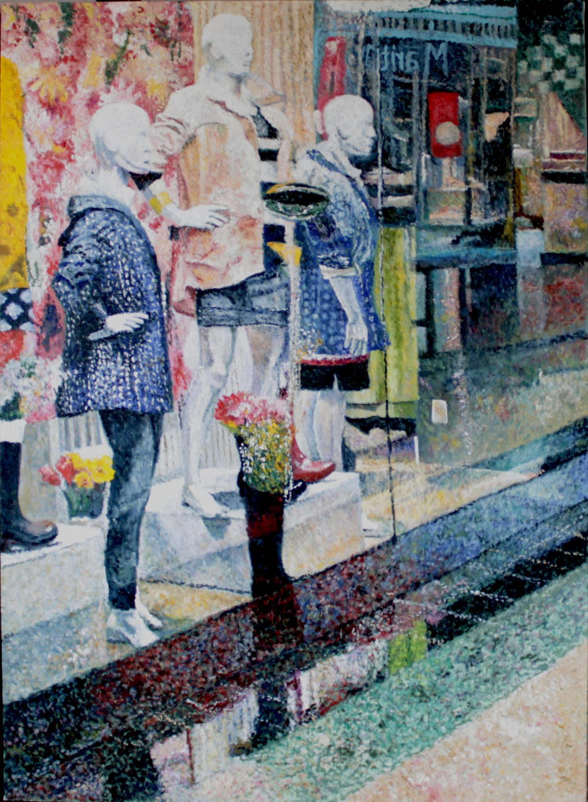 My works are oil on canvas. I do not use a palette. I apply raw colour and mix it directly on my canvas, working two or more areas that will eventually impact and create a connection with each other. My brush floats around the canvas until all the connections have been made and all parts of my painting are talking to one another - and together, they are communicating what I saw. That's when I know my painting is finished.