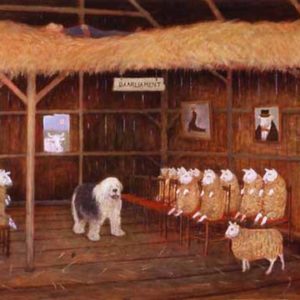 My paintings are a mix of realism and fantasy. I often use humour, particularly satire, to comment on "the human condition." I generally work in series, often for years before exhausting particular themes. I spent most of the 1980s on my Art of War series, which culminated in my self-published book, Art of War: Painting it out of the picture. My Angel looks series followed, and I am planning to self-publish a book on this series in the spring of 2004. My most recent series is Canuckiana, in which Canada forms the surface imagery.