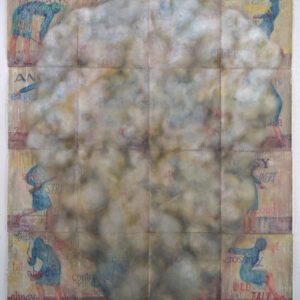 2022, Oil paint, oil stick, thread on paper, 172 x 150 cm