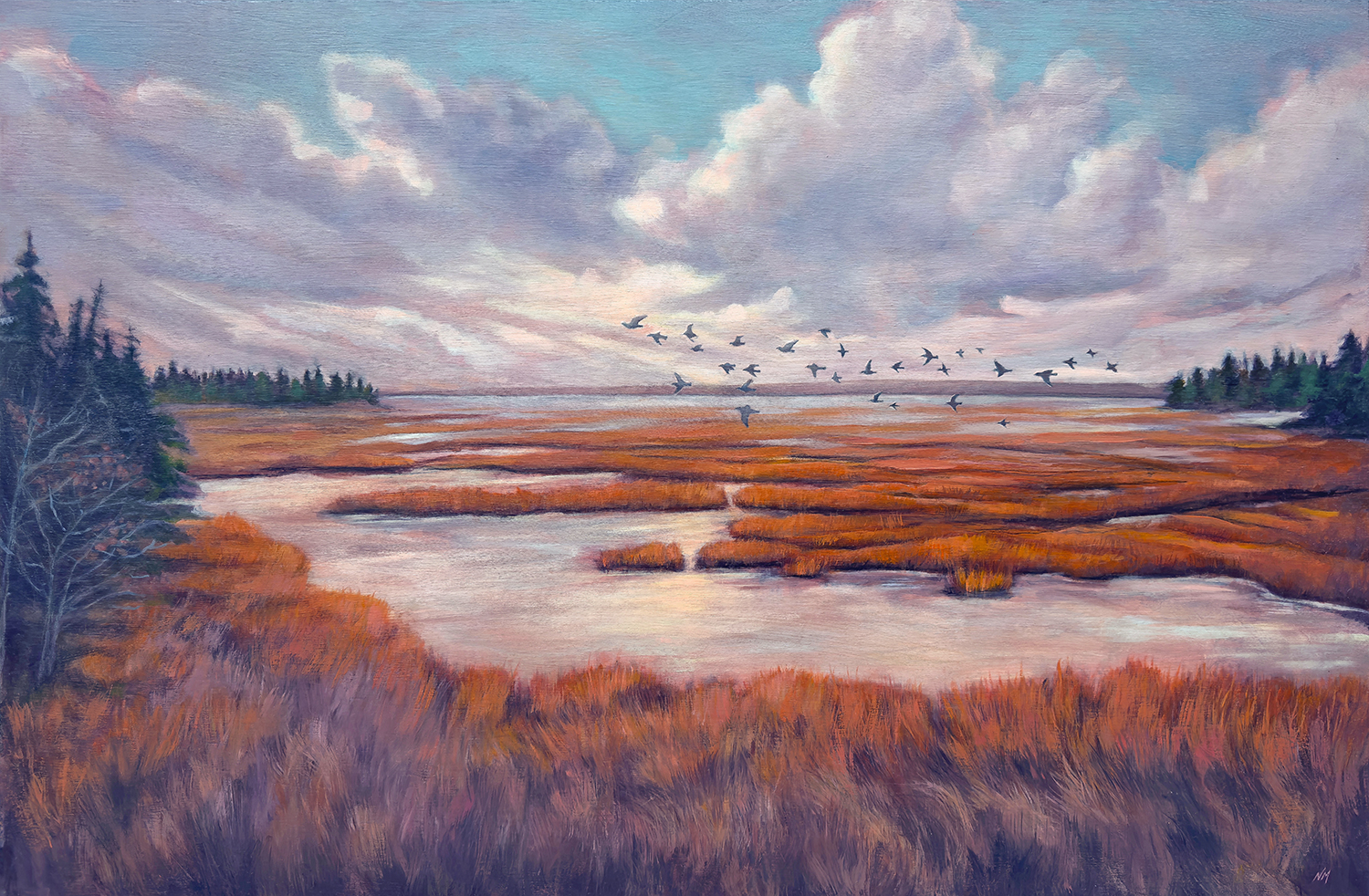 Nancy grew up in Nova Scotia and received her BFA in Fine Art from NSCAD University (1991). Nancy began her career as a professional artist working as a photographer for a regional Nova Scotia newspaper and went on to become a digital artist in the computer game industry, working in San Francisco, Toronto and Ottawa. After moving to the South Shore of N.S. in 2010, Nancy began to transition away from her computer to focus on more traditional drawing and painting. "Nova Scotia is my muse, one I share with the many artists that fall in love with this place. As a sensitive soul, I am deeply affected by my surroundings and as an artist one can't help but want to share the magic that this place evokes in you". Nancy is currently represented by the Laurie Swim Gallery in Lunenburg and is a member of the Lunenburg Art Gallery Society.