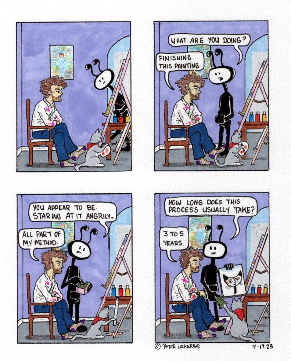 Peter Lockerbie is a draftsperson living in Digby Nova Scotia whose works include illustrations, paintings and comics. His work focuses on the small details that make up our larger world, and the humor necessary to exist within its complexities.