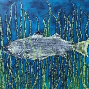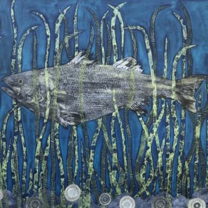 Her nature oriented practice explores the historical connections with nature notably with her Gyotaku (fish prints) series. It is a salient topic in an age of over reliance on technologies and the man-made world. Reeve often draws on her experience of living in Japan with her use of printmaking, gyotaku and collage of Japanese papers. “I am attracted to the respect and affection for nature that exists in Japan.” With her Gyotaku series, she has collaborated with a local fisherman and scientist to work specifically with Atlantic species.
