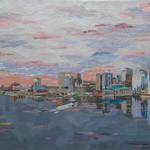 Rhonda Barrett is an artist from Newfoundland with a background in Architectural Technology, currently living in Nova Scotia, whose study of paper and Japanese arts finds her working in a chigiri-e style with newsprint. The waste-not-want-not attitude and nostalgia of her maritime upbringing is paramount in her choice of medium and also informs many of the images she captures. The use of newspaper as her primary medium is a nod to the temporal arts and our ideas of material value. She works out of her studio in Halifax, NS.