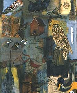 Rose Adams moved back to Dartmouth, NS in 2001 (where she grew up) and now divides her time between the city and Port Lorne, Annapolis County. Since 1989, her work has explored how humans interact with nature in exhibitions Nature Morte (1992),  Garden of Delights (1993),  Fundy Suite (1997) and most recently  AVES (2002). themes of memorial, science/art, motherhood and natural history surface in her work. While working primarily with paint and drawing media, rose has also exhibition installation works and colour photography. Recent solo shows include Aves at Argyle Fine Art, Halifax and  The Mourning Room at the Craig Gallery, Dartmouth in 2002. Her work can be found at the Art Sales and Rental of the Art Gallery of Nova Scotia and in private and public collections. She teaches part-time in the Foundation Department of the Nova Scotia College of Art and Design.
