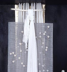 Smith’s sculptural work consists of shadow boxes containing various assembled objects. Smith arranges them singly or in groups, layered or clustered. In a process of blending intuitive and deliberate decisions, she chooses these objects for themselves, for how they function together, without regard for their individual symbolism. In the juxtaposition of these objects a metamorphosis occurs which creates a new symbolism that transcends individual meaning of the objects.