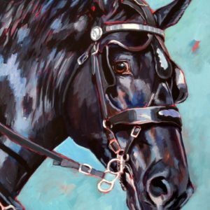A recurring theme in my work is the exploration of the complicated relationships between humans and our domesticated animals. Horses and how we treat them figure prominently, and I often look for tensions that are outside the traditional animal portraiture.