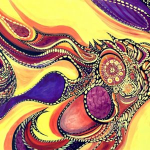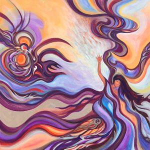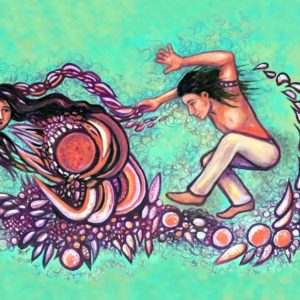 Teresa Young is a Metis artist who was born on the west coast of Canada and is currently living in Nova Scotia. Her art style is very aboriginal with flowing colours, bold lines and vivid, complementary colour schemes.