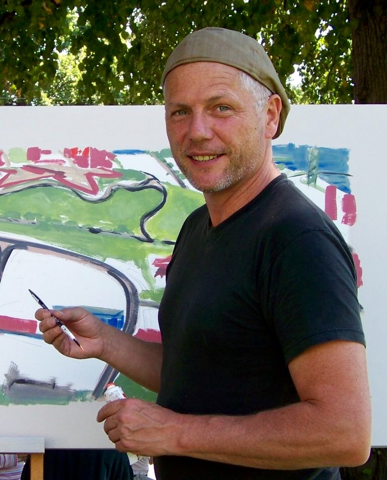 I make art to pay the rent, entertain the audience, and to leave behind a visual legacy. Sometimes my paintings work, sometimes they don’t. An artist never gives up the search for beauty. The way a painted dark purple shadow can bring a building alive. The way one small unplanned mark can change everything. Painting is about filtering out all the bad marks and color areas and leaving behind the good stuff. Painting is visual editing, polishing something up but also leaving behind raw energy to keep the fire burning. It’s fun when it’s working, it’s a battle when it’s not.
