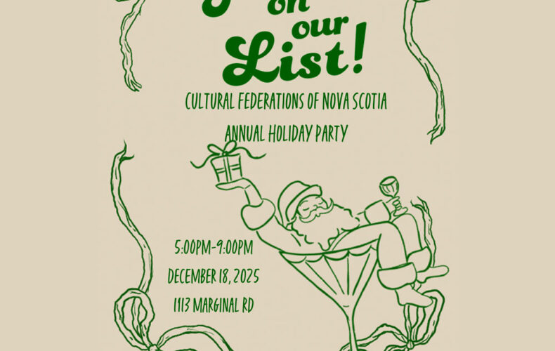 On behalf of the eight federations that comprise the Cultural Federations of Nova Scotia, we warmly invite you to our 2025 Holiday Party! Join us as we celebrate the culture, artistry, and heritage of Nova Scotia with an evening filled with festive cheer on Thursday, December 18. Drop in between 5 – 9 pm at the…