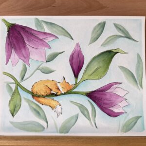 A beginner’s class on watercolour painting, specifically in an illustration style.
