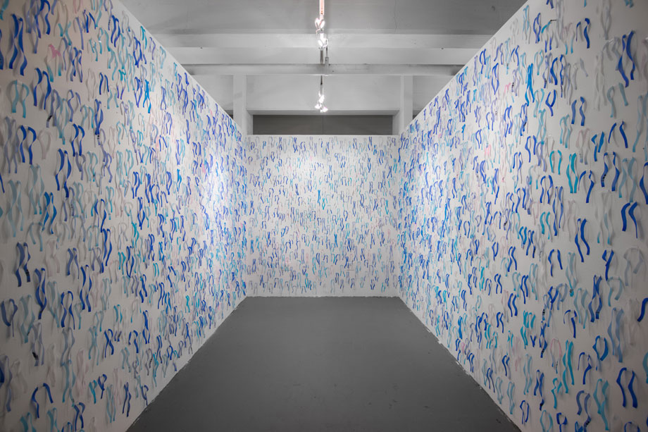 This project employs a postmodern pluralistic approach – aiming to blur media distinctions and present layered meaning and concept. The work functions in-between line drawing, collage, sculpture, and installation. The caps have been altered to present a subversive yet ambiguous sexuality. The colour palette of the cut silicone is simultaneously reflective of sex toys and swimming pools. The resulting installation is a space that is humorous and slightly uncomfortable, celebratory and anticlimactic – wet and dry.