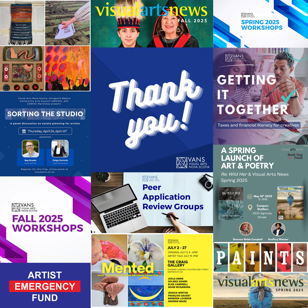 If you haven’t purchased an auto-renewing membership, you can renew your membership online here or by sending a cheque along with a Membership Form to VANS, 1113 Marginal Road, Halifax, NS, B3H 4P7. You can also send an e-transfer to communicate@visualarts.ns.ca – just make sure you also send an email with your contact info so we can update our records. Need more info or renewal options? Email communicate@visualarts.ns.ca.